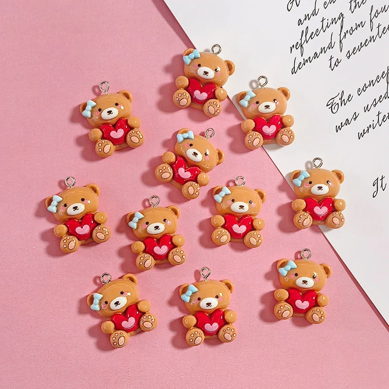 10pcs Valentine's Day Gifts Resin Teddy Bear Charms Hug Heart Cute Animal Pendant DIY Women Earring Necklace Jewelry Making