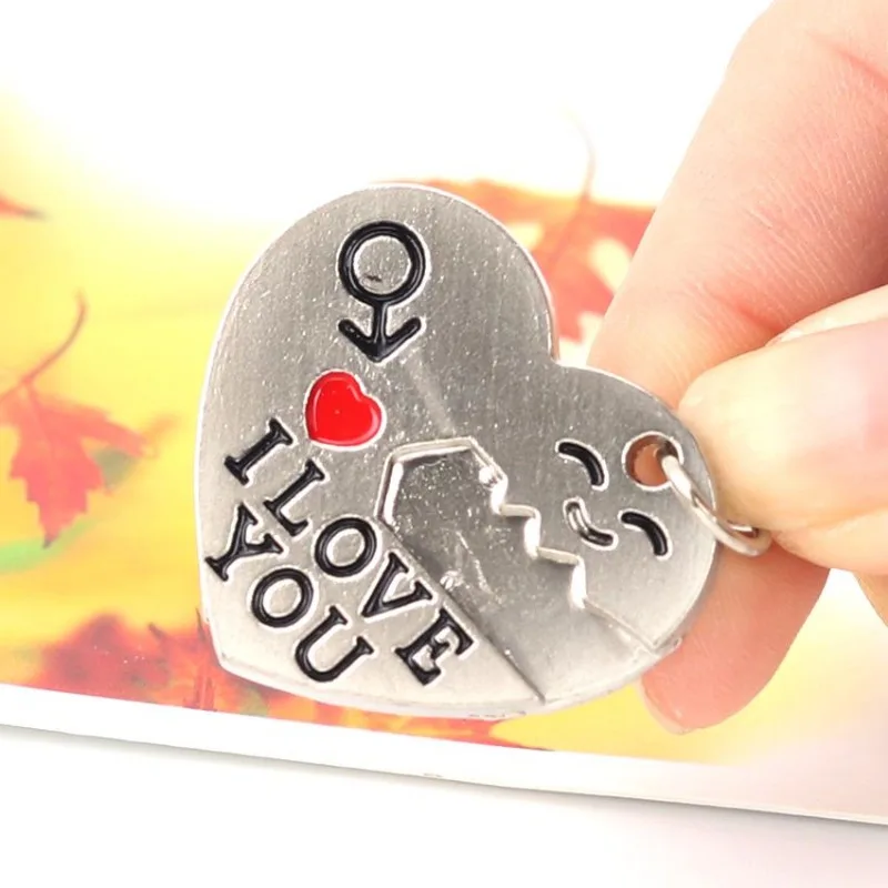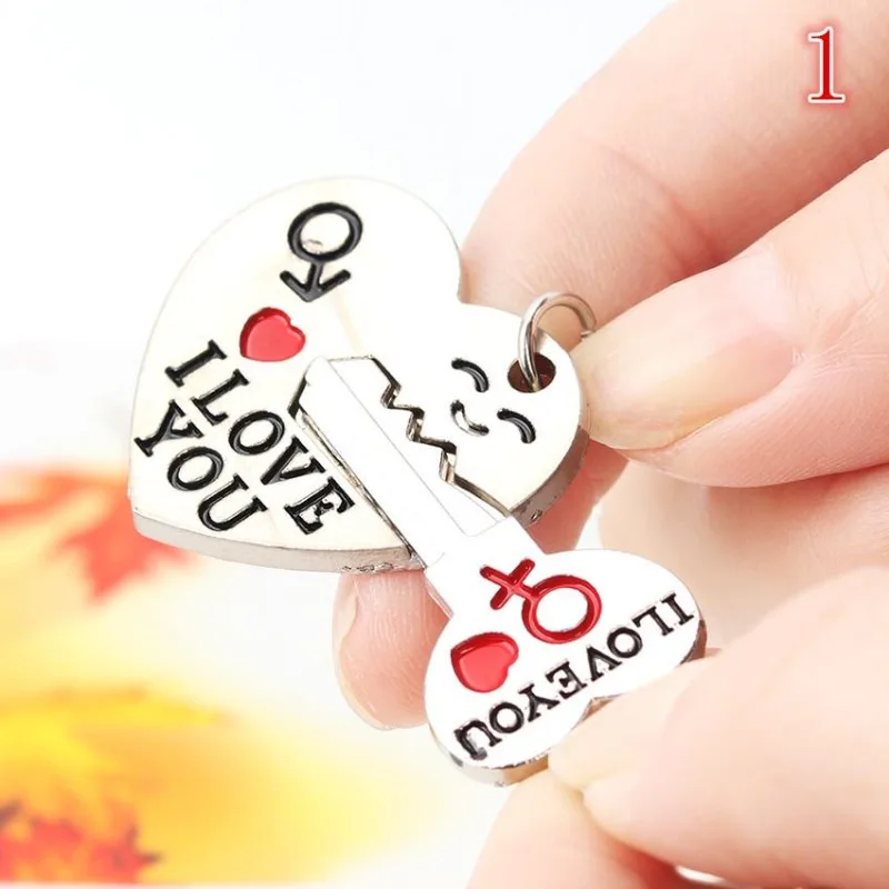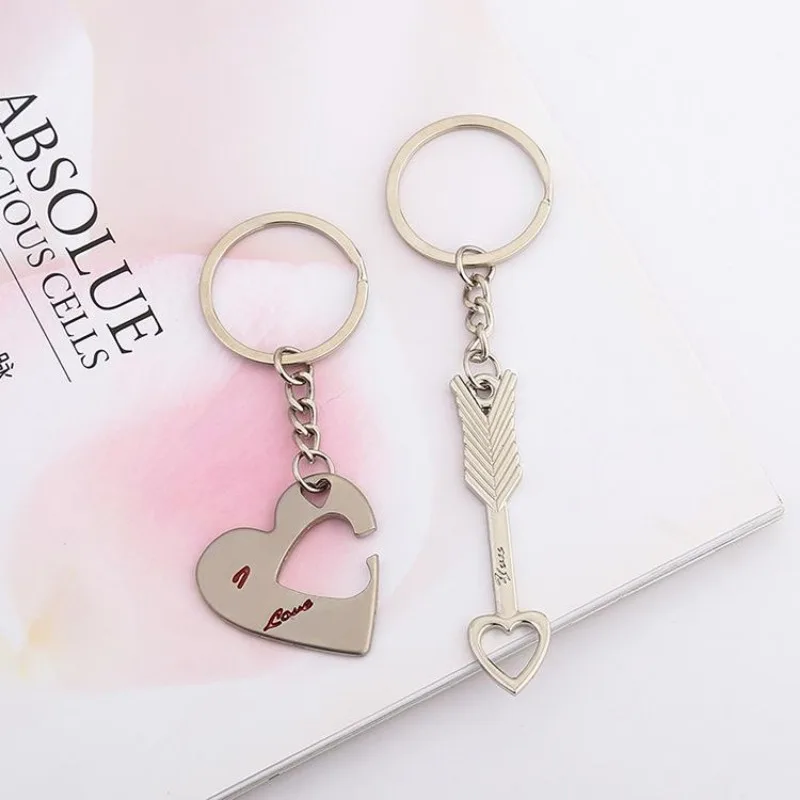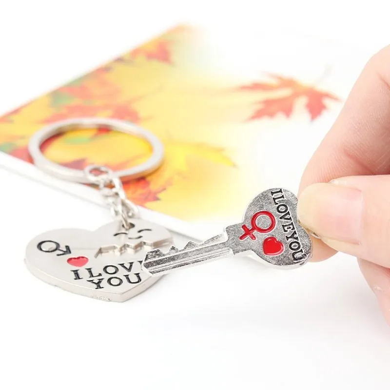 2pcs/set Romantic Couple Keychain Keyring Keyfob Valentine's Day Lover Gift Heart Key Ring
