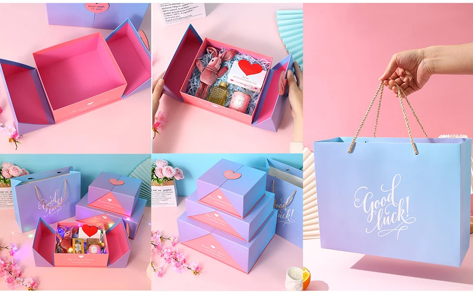 4in1 Gifts Box Set, (Box + Bag + Filling Balls +Greeting Card with Envolope) Valentines Day Presents Anniversary