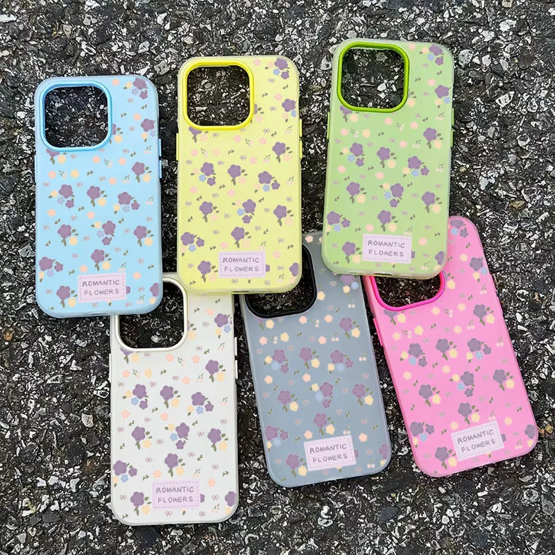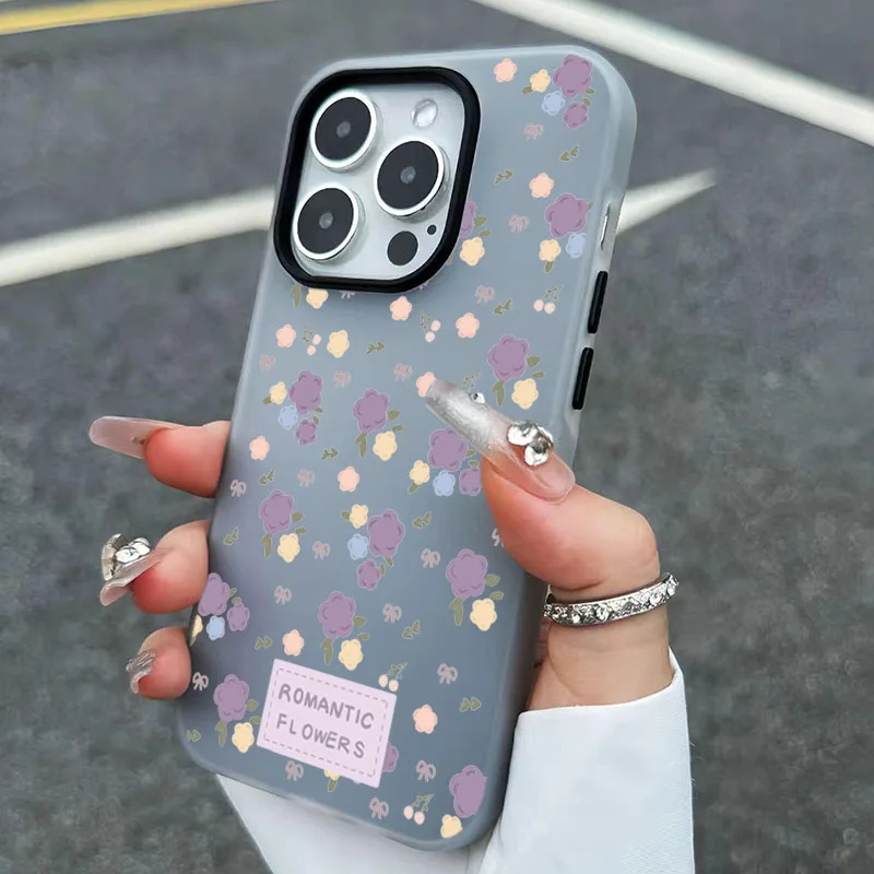 Aesthetic Cute Flower Pattern Design 2 in 1 Matte Phone Case For iPhone 17 16 Pro Max Air XS X XR 15 14 13 12 11 16 Plus Cover