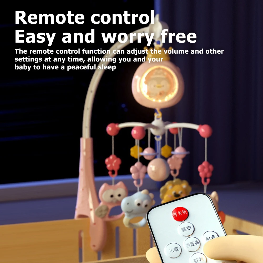 Baby Crib Mobile with Projector and Night Light, Remote Control Musical Rotating Toy with Soothing Lullabies for Newborns