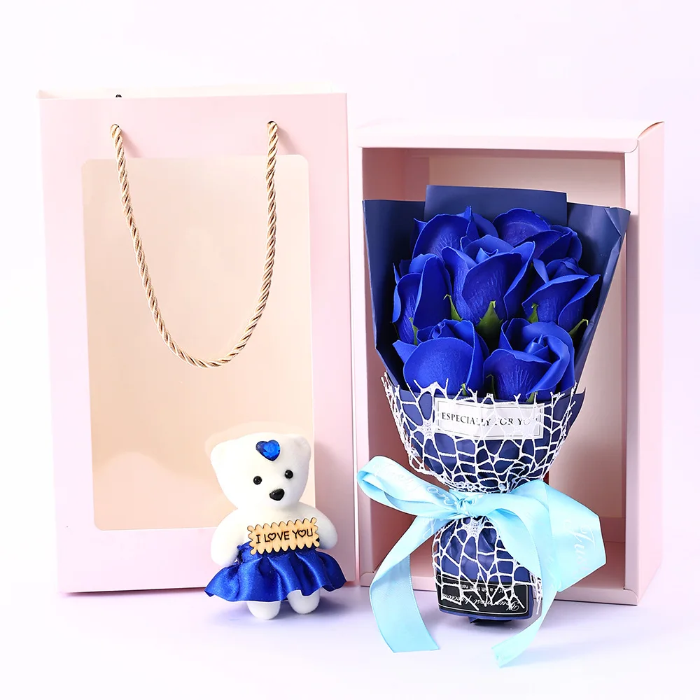 Valentine’s Day Mother’s Day Artificial Soap Rose Bouquet with Teddy Bear Gift Box Romantic Gift for Her Creative Home Decor